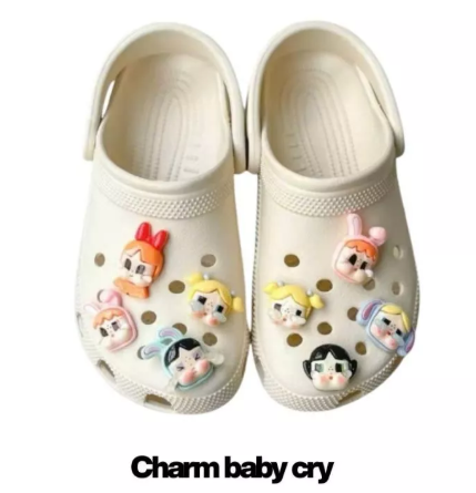 Mẫu dép sục này gây ấn tượng bởi tông màu kem trung tính, dễ phối đồ, phù hợp cho cả nam và nữ. Điểm nổi bật chính là các charm baby cry gắn trên bề mặt dép – tạo hình nhân vật ngộ nghĩnh, biểu cảm đáng yêu, mang lại cảm giác vui tươi mỗi khi sử dụng. Người dùng hoàn toàn có thể tháo – gắn charm linh hoạt để thay đổi phong cách theo sở thích cá nhân.